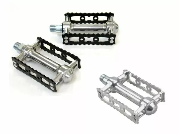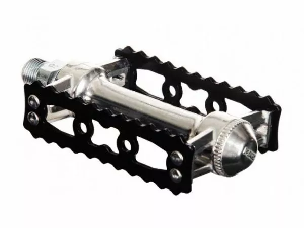 Das klassische Touring Pedal von MKS wird in Japan hergestellt. Der Aluminium-Käfig verbunden mit einer CrMo Achse ist das optimale Pedale für klassiche Aufbauten. Die Pedale können mit Haken und Riemen gefahren werden.