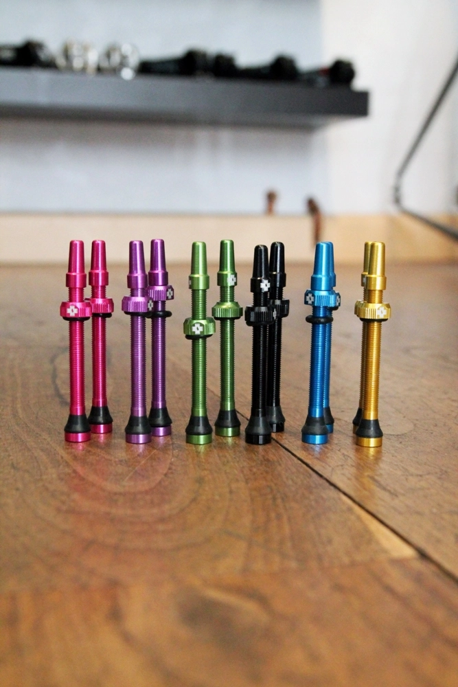 Die schicken Premium Tubeless Ventile von Muc-Off versprechen nicht zu viel. Sowohl optisch als auch technisch sind sie erstklassig. Mit 3 verschiedenen Gummi Passstücken sind sie mit allen gängigen Tubeless Felgen kompatibel und gewährleisten eine optimale Abdichtung zwischen Ventil und Felge. Gummidichtringe unter den Rändelmuttern vermeiden Kraftspitzen bei empfindlichen Leichtbaufelgen und schonen die Felgenoberfläche. Optisch überzeugen die aus Aluminium 6061 gefertigtem Ventile mit ihren 8 verschiedenen, knalligen Eloxalfarben. Passend zu den Ventilen sind auch die Ventilkappen und Rändelmuttern eloxiert und mit Muc-Off Logos verziert. Praktisches Gimmick: Die Ventile werden mit einem Core Removal Tool ausgeliefert, dass auch als Ventilkappe verwendet werden kann.