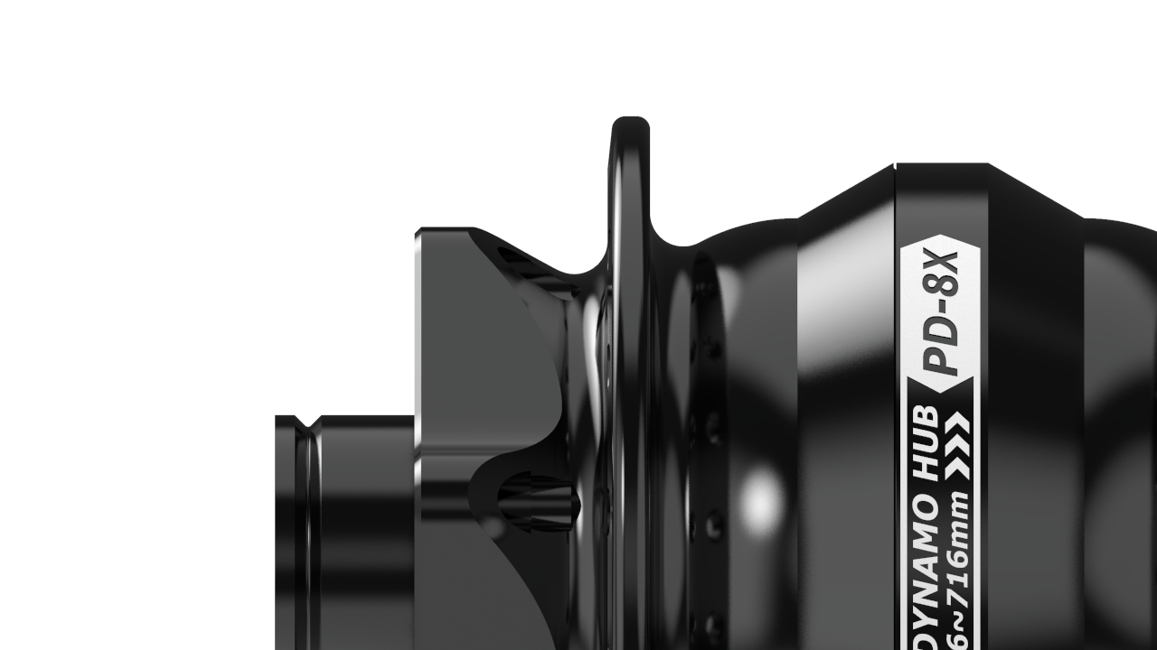 Die P-Serie Dynamos sind nicht nur leistungsstark, sondern auch effizient, sie bieten einen unerreichten Wirkungsgrad von 78 % bei 15 km/h. Obwohl die Scheibenbrems-Variante höheren Belastungen ausgesetzt ist und daher ein im Inneren verstärktes Nabengehäuse besitzt, konnte das Erscheinungsbild filigran und das Gewicht niedrig gehalten werden. Der leistungsstarke Magnetkern sorgt für hohe Leistung und auch bei dieser Variante sind verschiedene Farben und Lochzahlen erhältlich. Der Shutter Precision PD-8X Nabendynamo gehört mit 465 Gramm zu den Leichtesten seiner Klasse. Er bietet einen sehr guten Wirkungsgrad von 78% bei 15 km/h und niedrige Leerlaufverluste. Die Nennleistung beträgt 3 Watt bei einer Spannung von 6 Volt. Er ist geeignet für Laufradgrößen von 26-29 Zoll, mit 6-Loch Scheibenbremsaufnahme und für Steckachse.