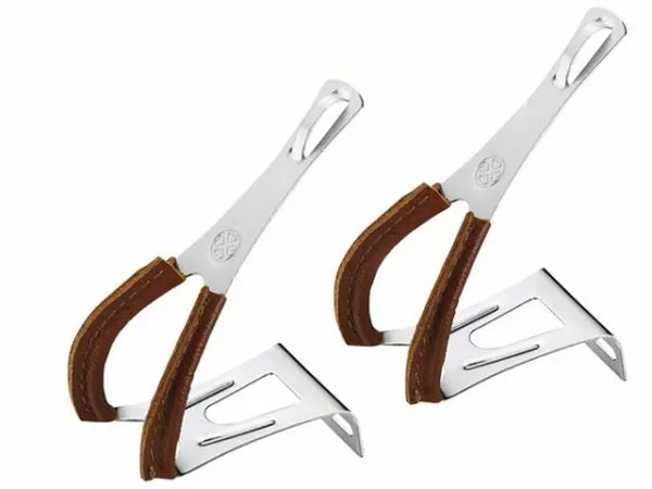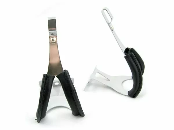 Sehr schöne und gut verarbeitete klassische Pedalhaken. Klassische Pedalhaken für einfache Pedalriemen-Systeme mit Schuhschutz aus Leder.
