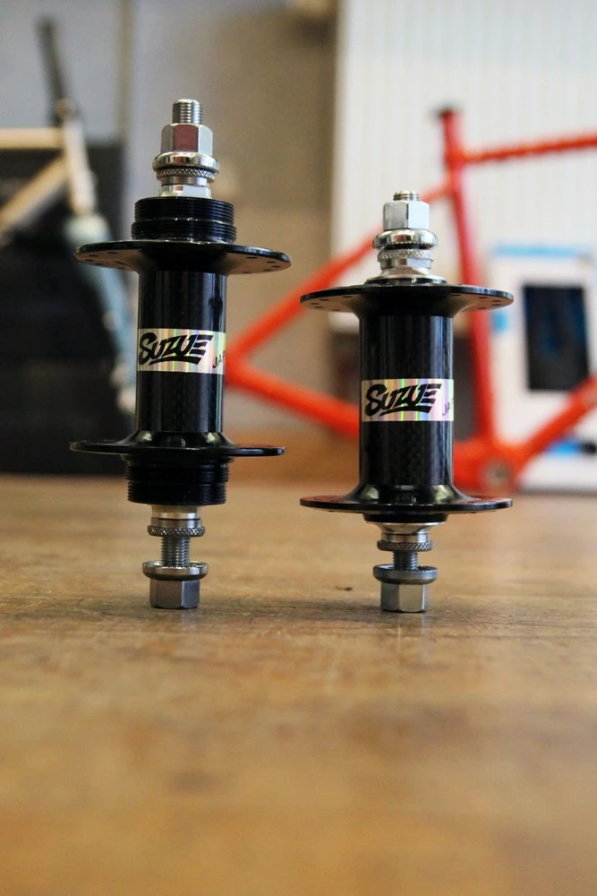 Suzue ist für hochwertige und langlebige Produkte aus dem Bahnsport bekannt. Seit Anfang der 50iger Jahre baut Suzue schon Naben, im Jahre 1996 wurde mit der Produktion von NJS zertifizierten Bahnnaben für Keirin Rennen in Japan begonnen. Die langjährige Erfahrung zeigt sich vorallem in der Qualität und Präzision der Naben und Lager. Durch die verbauten japanischen Cartridge-Lager laufen die Naben weich und lange. Der Nabenkörper ist auch hochwertigem Carbon und endet in Aluminium-Flansch und geben der Nabe zusätzliche Steifigkeit und ein edles Finish. Wenn Du eine aussergewöhnliche Nabe mit perfekten Eigenschaften, die nicht jeder hat, haben möchtest ist Suzue genau das richtige für Dich.