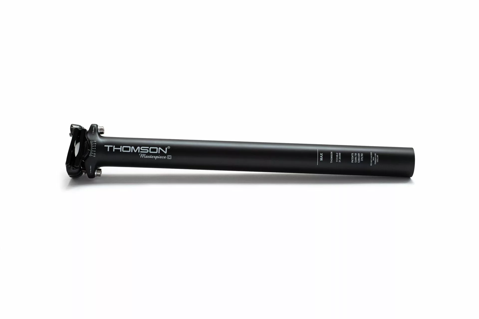 Die Thomson Carbon Sattelstütze mit Titanbeschlägen. Präzise Einstellbarkeit und nachgewiesene Leistung.
